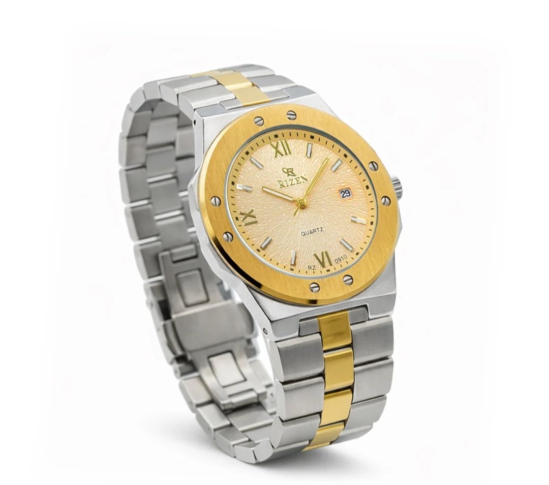 Designed for confident everyday wear, the RZ-0910 features a reliable Quartz Movement housed in a 42.0 MM stainless-steel case with a sleek 9.6 MM profile. Its 122G weight and stainless-steel band provide a strong yet refined presence on the wrist, while 3ATM water resistance ensures durability for daily use.
