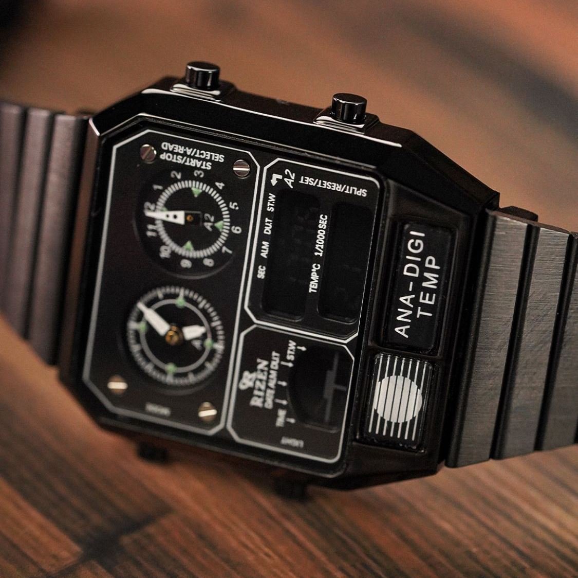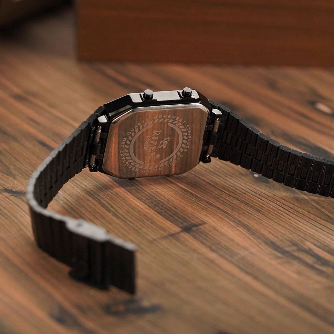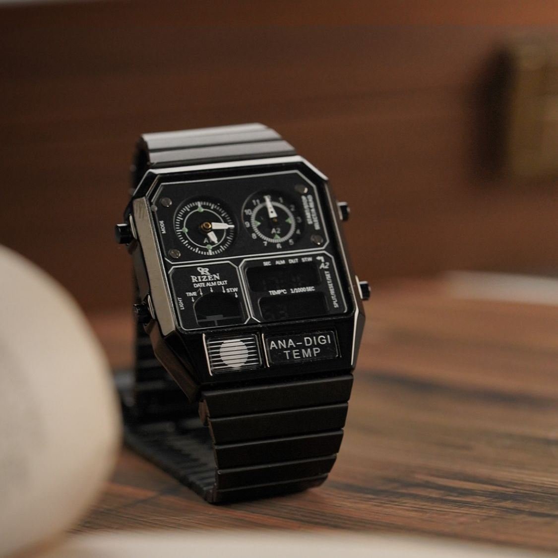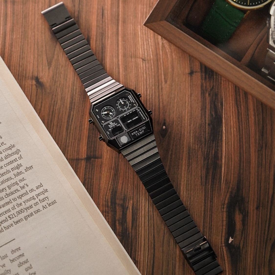 A bold analog-digital watch with dual-time display and built-in thermometer for everyday convenience. Featuring LED backlight, alarm, stopwatch, date display and 12/24-hour format, it’s shock resistant, water resistant and designed for reliable daily wear with a standout retro-modern look.